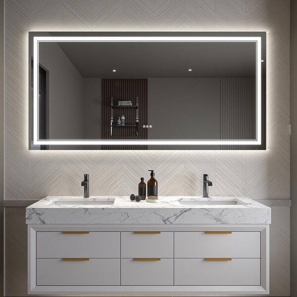 72 in. W x 36 in. H Rectangular Frameless Fog Free Dimmable Silver Wall Mount LED Lighted Bathroom Vanity Mirror