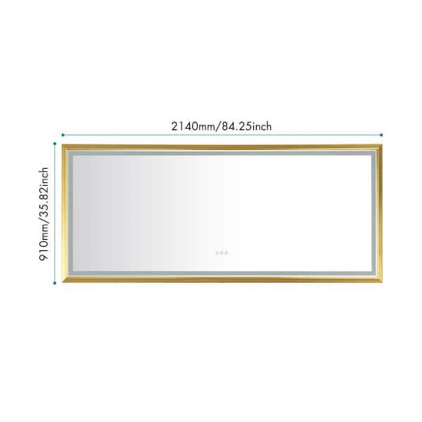 88 in. W x 38 in. H Rectangular Framed Anti-Fog Dimmable Wall Mounted LED Bathroom Vanity Mirror in Gold