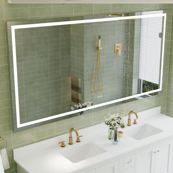 Anti-Fog LED Light 84 in. W x 42 in. H Large Rectangular Frameless Wall Mounted Bathroom Vanity Mirror (With Plug)
