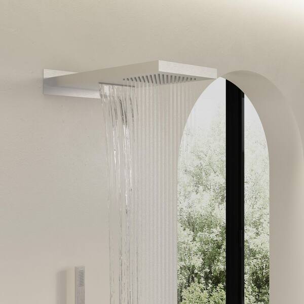 Doule Handle 3-Spray Shower Faucet 2.5 GPM with Rainfall and Waterfall Shower Head, Pressure Balance in Brushed Nickel