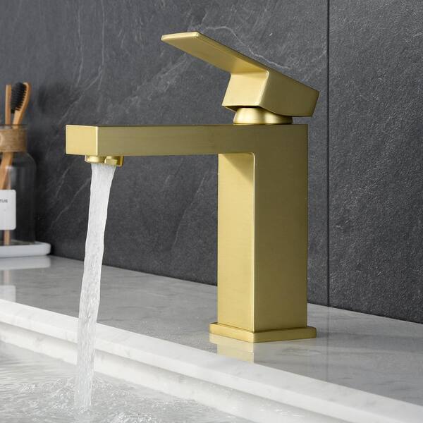 Modern Single Handle Single Hole Bathroom Faucet in Brushed Gold