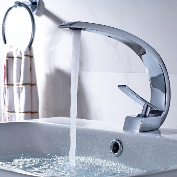 Modern Single Handle Single Hole Bathroom Faucet in Brushed Nickel