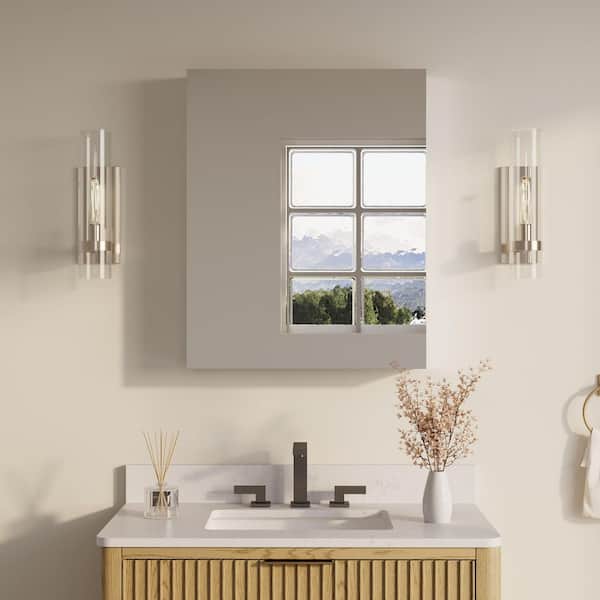RO 24 in. W x 30 in. H Rectangular Surface or Recessed Mount Chrome Aluminum Medicine Cabinet with Mirror
