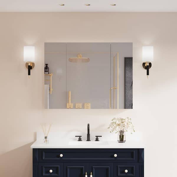 RO 40 in. W x 30 in. H Rectangular Surface or Recessed Mount Chrome Aluminum Medicine Cabinet with Mirror