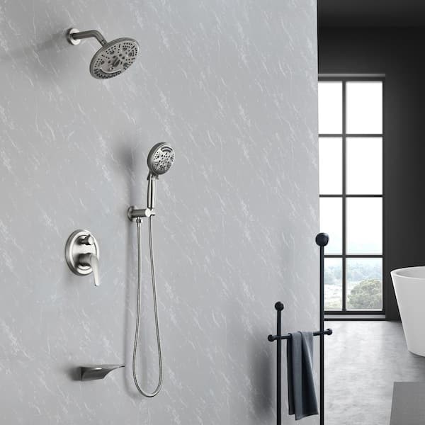 Single Handle 6 -Spray Shower Faucet 1.8 GPM with Waterfall Tub Spout and 9-Setting Handheld Shower in. Brushed Nickel