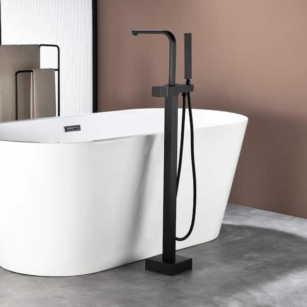 Single-Handle Freestanding Floor Mounted Tub Filler Faucet and Hand Shower in Black