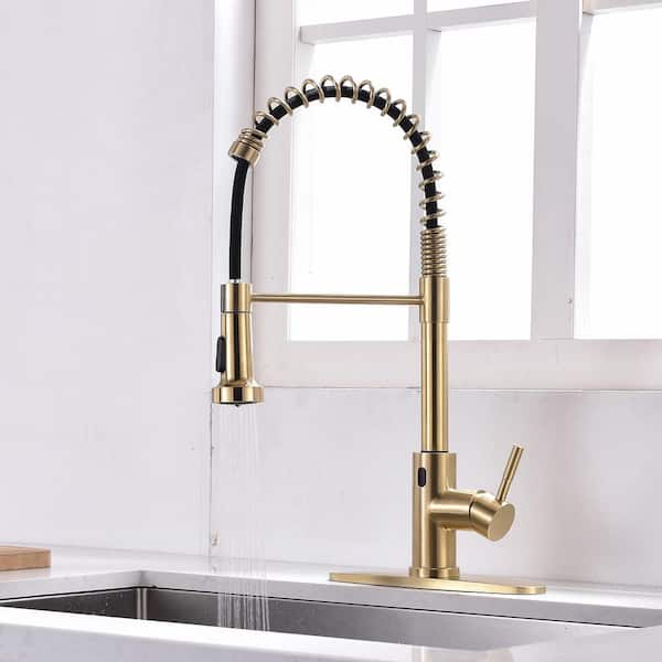 Single Handle Non-touch Sensitive Pull Down Sprayer Kitchen Faucet in Gold