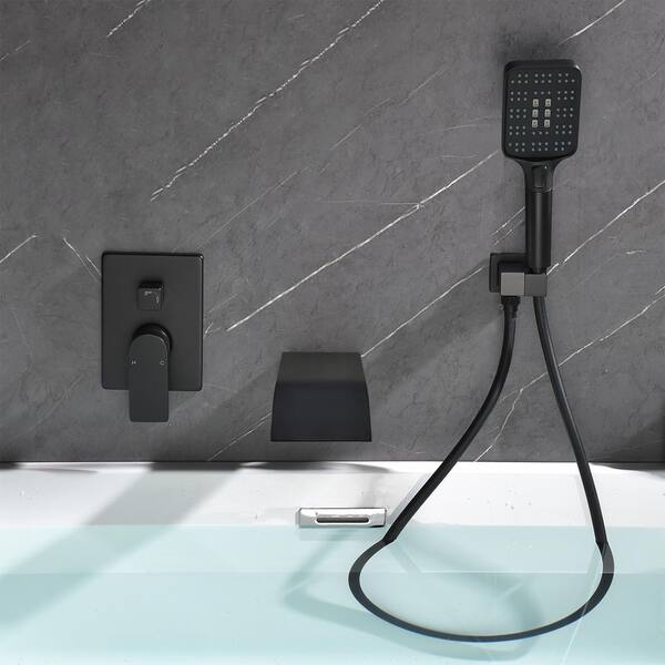 Single-Handle Wall Mount 1 -Spray Roman Tub Faucet 2.5 GPM with 10 in. Handheld Shower in. Black Valve Included