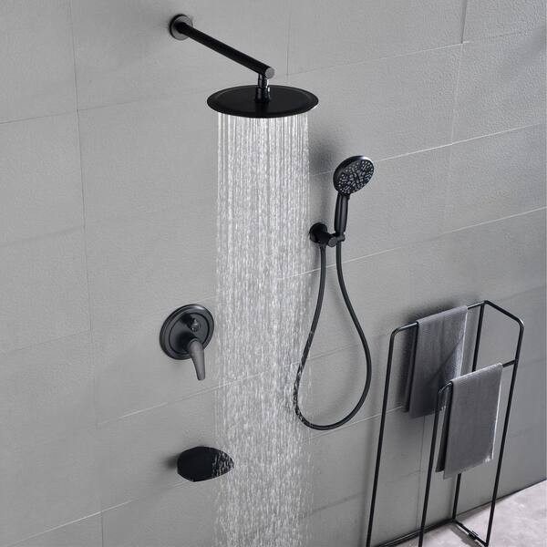 Single Handle Wall Mount 1 -Spray Tub and Shower Faucet 1.8 GPM with 10 in. Shower Head in Black(Valve Included)