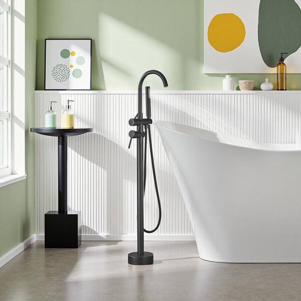 2-Handle Claw Foot Tub Faucet with Hand Shower in Black