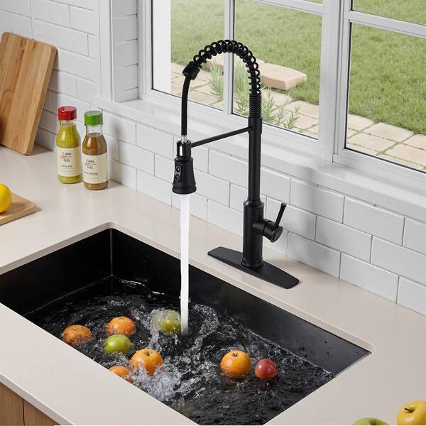 High Arc Kitchen Faucet with Pull Down Sprayer Commercial Spring Kitchen Sink Faucet for Black in Kitchen