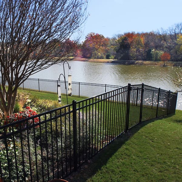 Versai 4.5 ft. H x 7.5 ft. W Gloss Black Steel Flat Top and Bottom Design Fence Panel for Pool Application