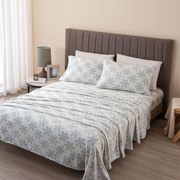 Blue Printed Velvet Plush Polyester Ultra Soft California King Bed Sheet Set