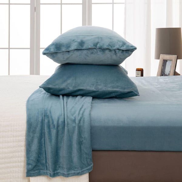 Blue Ultra Soft Solid Color Velvet Plush Polyester Twin Bed Sheet Set