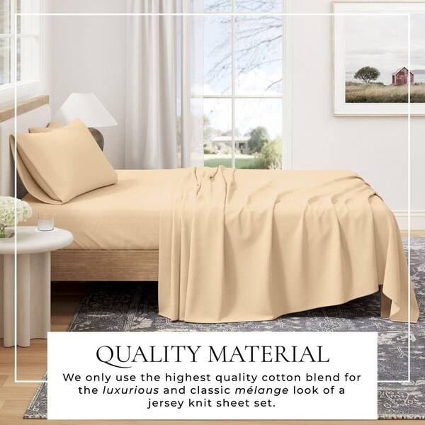 Brown Ultra-Soft Cotton Heathered Melange Jersey Knit Full Sheet Set