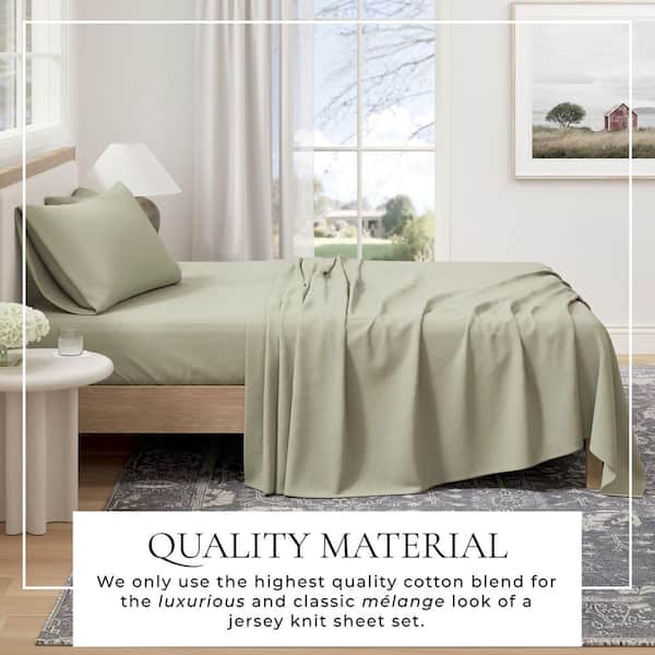 Green Ultra-Soft Cotton Heathered Melange Jersey Knit King Sheet Set