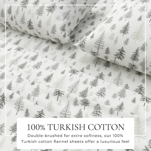 Grey 4-Piece Nature Inspired Turkish Cotton Flannel Full Sheet Set