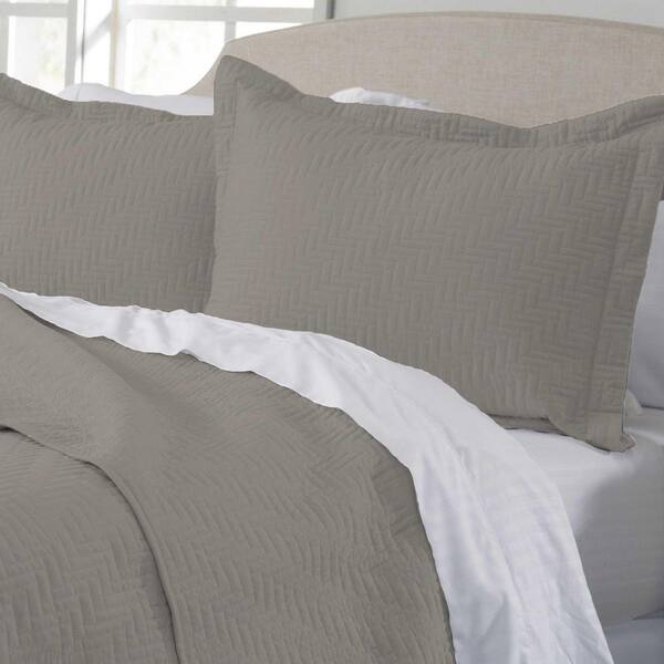 Grey Herringbone Stitch Microfiber All-Season Quilt Set With Shams