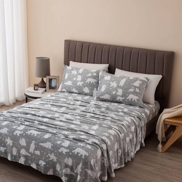 Grey Printed Velvet Plush Polyester Ultra Soft Twin Bed Sheet Set
