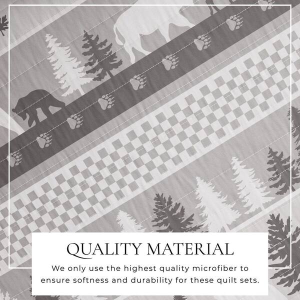 Grey Reversible Lodge Landscape Printed 2 Piece Microfiber Polyester Quilt Set, Twin / Twin XL