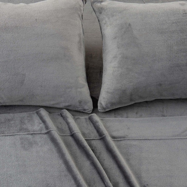 Grey Ultra Soft Solid Color Velvet Plush Polyester Twin Bed Sheet Set