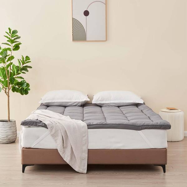 Light Grey Premium 2 in. Thick Down Alternative Queen Mattress Topper
