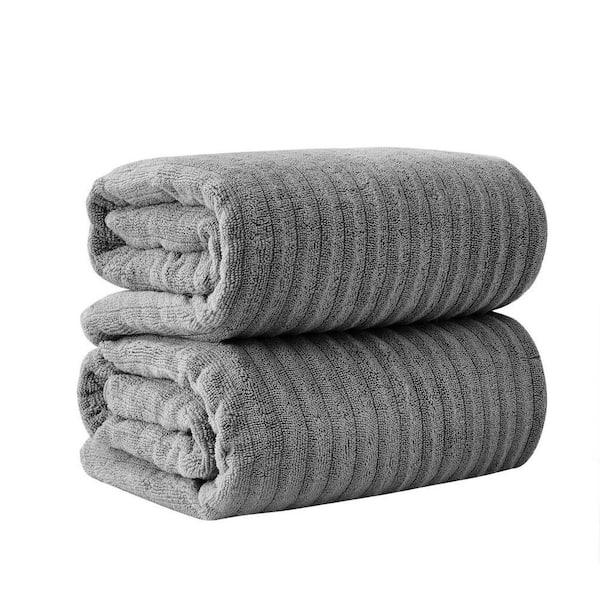 Mid Grey Premium Cotton Ribbed Textured 2-Pack Bath Sheet Set