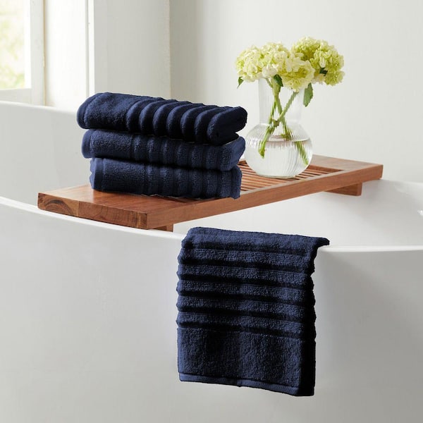 Navy Blue Premium Cotton Ribbed Textured 6-Pack Hand Towel Set