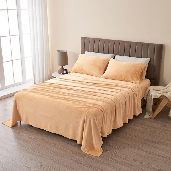 Nude Ultra Soft Solid Color Velvet Plush Polyester Bed Sheet Set