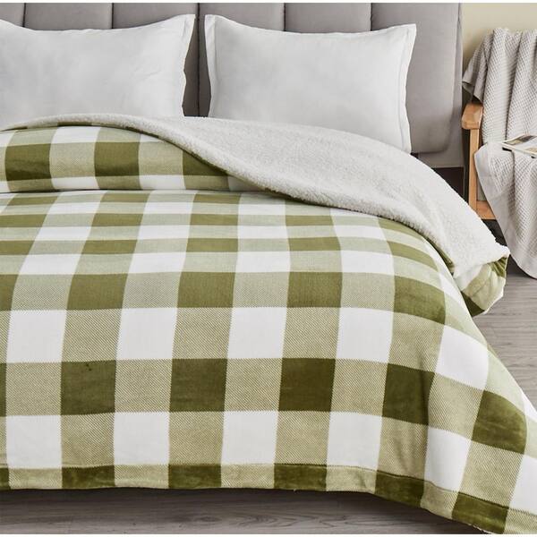 Olive Green Buffalo Checks Reversible Plush Polyester Sherpa Blanket