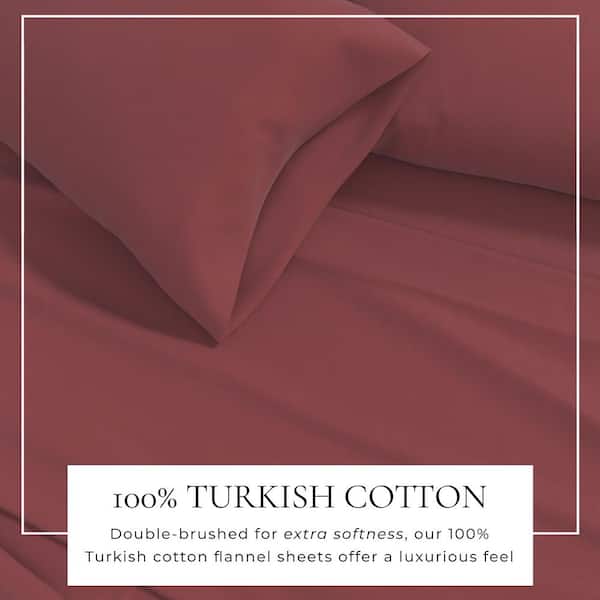 Pink 4-Piece Turkish Cotton Flannel Queen Sheet Set