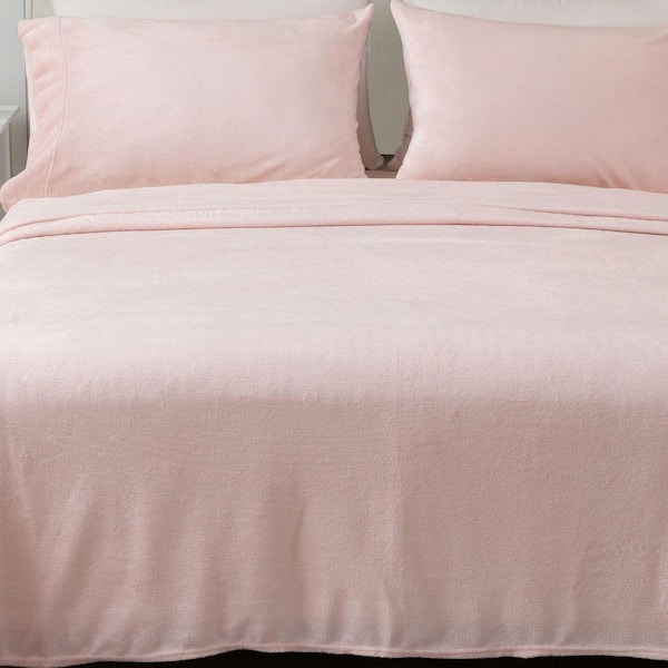 Pink Ultra Soft Solid Color Velvet Plush Polyester California King Bed Sheet Set