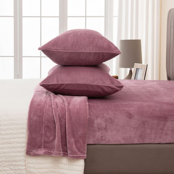 Pink Ultra Soft Solid Color Velvet Plush Polyester King Bed Sheet Set