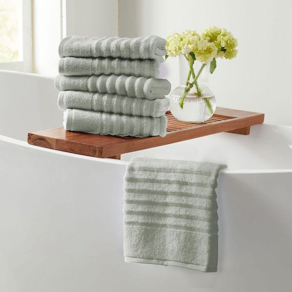 Sage Green Premium Cotton Ribbed Textured 6-Pack Hand Towel Set