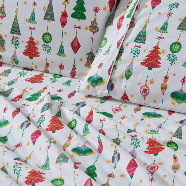 White Holiday Printed 4-Piece Microfiber Bed Sheet Set