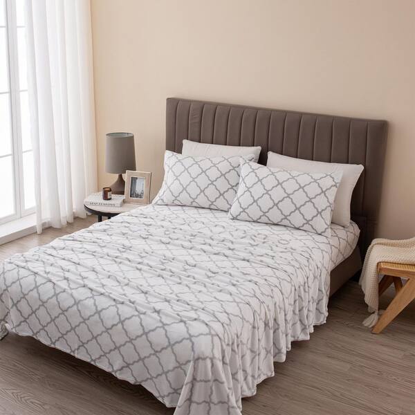 White Super Soft Velvet Plush Polyester King Bed Sheet Set