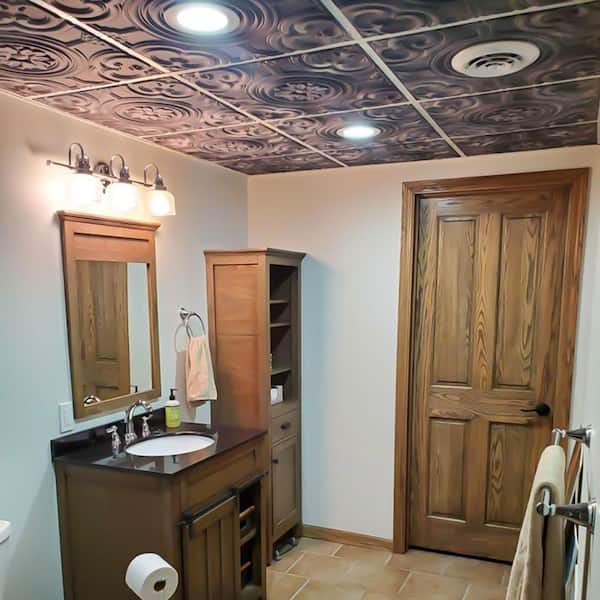 Classical Circles Reclaimed Tin 2 ft. x 2 ft. PVC Glue Up or Lay In Ceiling Tile (100 sq. ft./case)