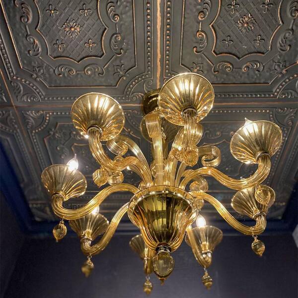 Elizabethan Shield 2 ft. x 2 ft. Glue Up PVC Ceiling Tile in Graphite Gold