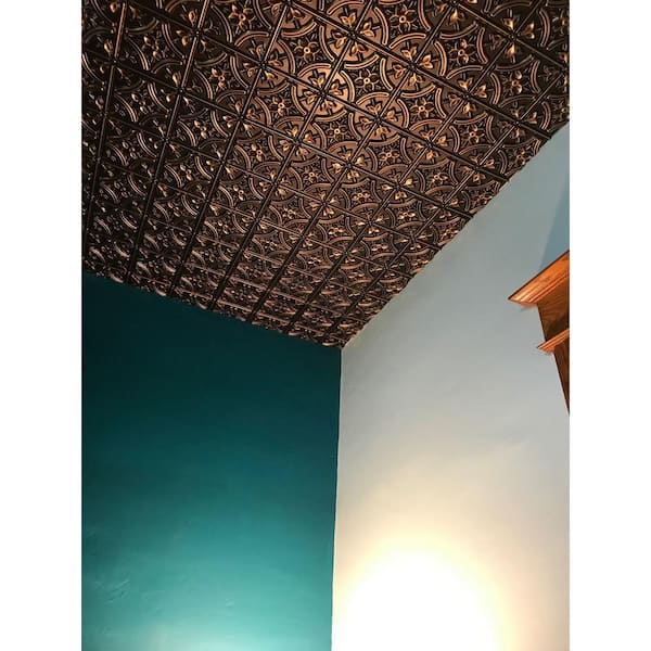 Gothic Reams Antique Copper 2 ft. x 2 ft. PVC Glue Up Faux Tin Ceiling Tile (40 sq. ft. /Case)