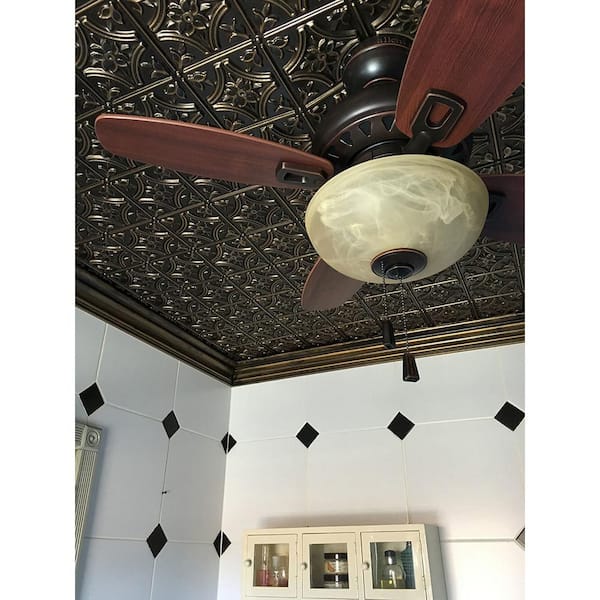 Gothic Reams Antique Gold 2 ft. x 2 ft. Glue Up PVC Faux Tin Ceiling Tile (100 sq. ft./case)