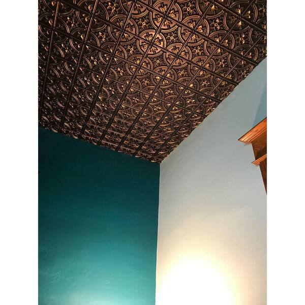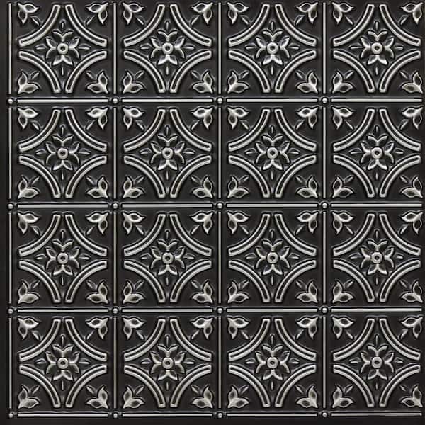 Gothic Reams Antique Silver 2 ft. x 2 ft. Glue Up PVC Faux Tin Ceiling Tile (200 sq. ft./case)