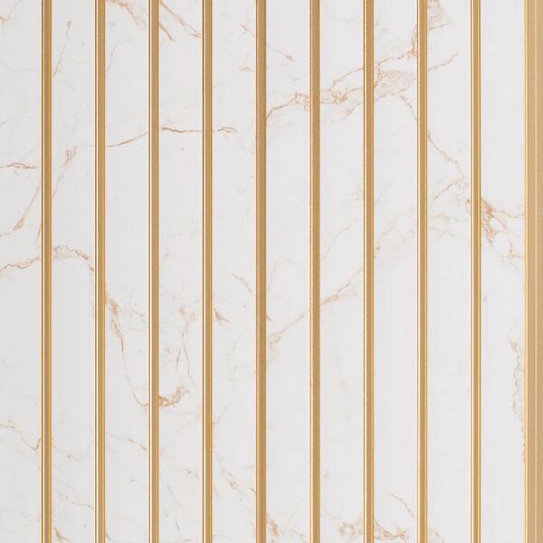 Large Slats 5/16 in. x 1 ft. x 9.3 ft. White Gilded Calacatta Marble Glue-Up Foam Wood Slat Walls (30-Pack)/279 sq. ft.