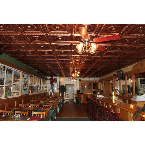 Laurel Wreath 2 ft. x 2 ft. PVC Glue-up or Lay-in Ceiling Tile in Copper