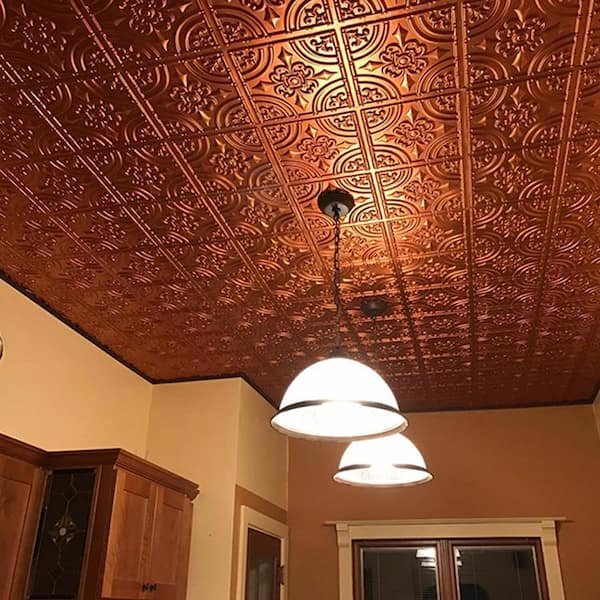 Wrought Iron Copper 2 ft. x 2 ft. PVC Glue Up Faux Tin Ceiling Tile (40 sq. ft. /Case)