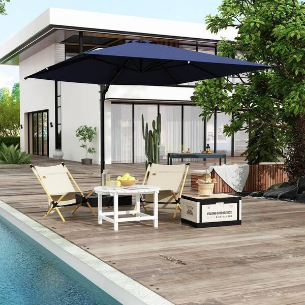 10 ft. Patio Umbrella Square Market Umbrella,Outdoor Cantilever Umbrella with 360° Rotation for Garden Deck in Navy Blue