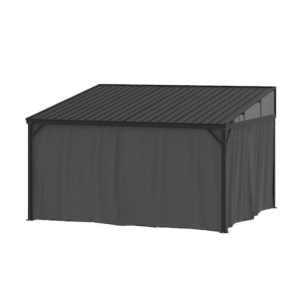 10 ft. x 12 ft. Aluminum Hardtop Wall Mounted Gazebo with Sloping Galvanized Steel Roof, Curtains and Netting
