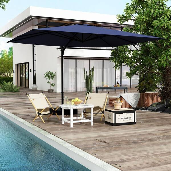 13 ft. x 10 ft. Patio Umbrella Rectangles Market Umbrella Outdoor Cantilever Umbrella with 360° Rotation in Navy Blue