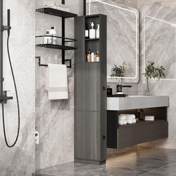 15.7 in. W x 5.9 in. D x 72.8 in. H Dark Gray Wood Freestanding Bathroom Linen Cabinet with 2 Drawers