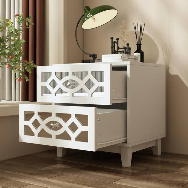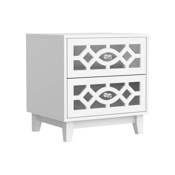 18.9 in. W Square White Paint Wood 3-Mirrored Drawers Side Table Bedside Table with Mirror Finish