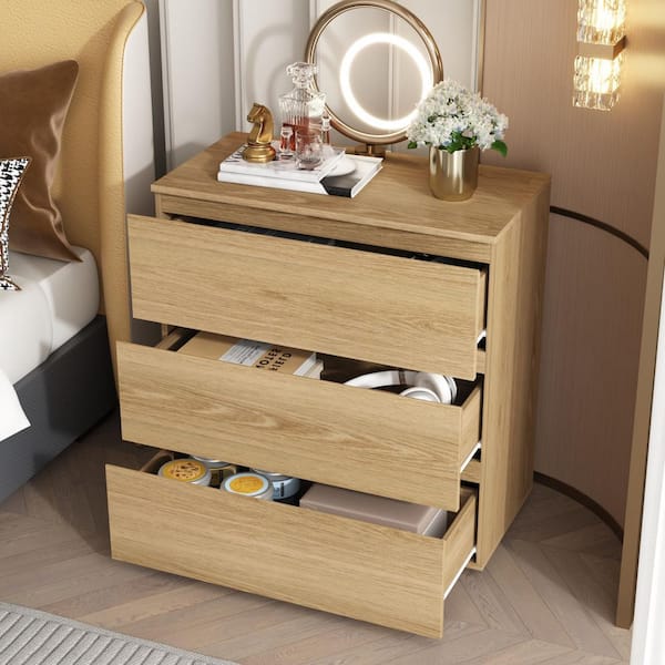 3-Drawer Natural Brown Wood 30 in. W Chest of Drawers Bedside Table Storage Dresser Freestanding Cabinet